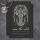 Diese Hochzeit speichern Sie die Datumskarte Design hat ein dunkles, launisches Thema, das einfach, aber atemberaubend ist. Ein verstopfter Engel in weißer gotischer Linie zeichne auf einem zweifarbigen Holzkohleboden. Einzigartig, mysteriös und elegant, kann dieses Design für jede Jahreszeit genutzt werden. Erstellt von der einfachen Farmhouse Press.