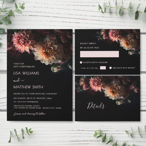 Dark Moody Flowers Chrysanthemum Wedding Menükarte