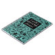 Auf einer aquamarinen, blauen Kulisse stehen schwarz gezeichnete Blumenfoilage, die einen Kontrast zu einem schwarzen Quadrat bildet, wo Sie Ihre Zeitschrift personalisieren können.