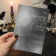 Entdecken Sie die Mystik Ihrer Liebe mit unserer zauberhaften, dunklen Romantik-Hochzeitseinladung. Dieses schlichte und elegante Design zeichnet sich durch einen schwarzen Hintergrund von Mitternacht aus, der einen geheimnisvollen Schleier von klugem Nebel enthält, der durch den Text treibt. Das Design erinnert an das Wesen zeitloser Romantik und Mysterien. Die dunkle Eleganz wird noch durch den cremefarbenen weißen Text des Mondes noch verstärkt. Dieses Design ist eine kunstvolle Verschmelzung von Schönheit und Drama, die verspricht, einen bezaubernden Ton für Ihren besonderen Tag Set. Wählen Sie dieses Design, um eine Hochzeit zu schaffen, die so einzigartig und unvergesslich ist wie Ihre Liebe. Es wurde von Simply Farmhouse Press erschaffen und ist Teil der Suite "Dark Moody Midnight Black Fog Wedding".