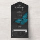 Dark Moody Minimal Aquamarin Moth Dinner Hochzeit All In One Einladung