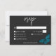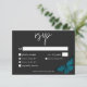 Dark Moody Minimal Aquamarin Moth Wedding Dinner RSVP Karte