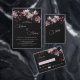 This dark moody romantic wedding invitation features light pink magnolia flowers on a black background. Bride and groom first names in an elegant classic calligraphic script.