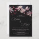 This dark moody romantic wedding invitation features light pink magnolia flowers on a black background. Bride and groom first names in an elegant classic calligraphic script.