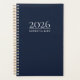 Stay organized and inspired with this Dark Navy 2026 Planner, featuring crisp white typography and a gold-beige spiral for a sophisticated finish. Personalize the cover with your title and year, and add your initials on the back for a refined, custom touch. Perfect for students, professionals, or anyone who values elegant, functional, and modern planners for daily planning and goal tracking.