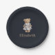 Dark Navy Custom Name Teddy Bear Girl Baby Shower Pappteller