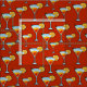Auf einem dunkelorangefarbenen Hintergrund wird ein Martini-Drink-Muster mit roter Kirsche und orangefarbenem Schnitt dargestellt.