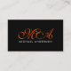 Mit der Dark Orange Monogram Elegant Script Business Card verleihen Sie Ihrem Unternehmen einen klassischen und klaren Look. Ideal für Firmenpositionen, Make-up Künstler, Event-Planer, Stylist und vieles mehr. Fügen Sie Ihre Text- und Geschäftsinformationen hinzu, diese Karten sind vorlagenfertig. Bei Designanfragen wenden Sie sich an den Designer. ©2010 Joshua Martin