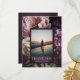 Elegant flat wedding thank you card featuring a dark purple floral theme. The moody color palette is great for a fall wedding. Use the template to add two of your favorite photos.