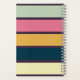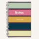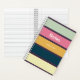 A colorful striped notebook with a dark purple background and text that reads "NOTES" and a custom monogrammed full name.