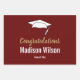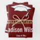 Herzlichen Glückwunsch! Ein weißes Graduiertencap ist über dem Wort "Glückwunsch" in Imitate (nicht Folie) Gold Skript. Personalisieren Sie mit dem Namen und dem Jahr der geschlossen Klasse. Die anderen Blätter sind dunkelrot mit einem Muster weißer Graduierungskappen.