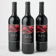 Dark Red Glam Wavy Satin Abstract Design Wedding Weinetikett