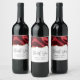 Dark Red Glam Wavy Satin Abstract Design Wedding Weinetikett