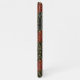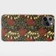 Seamless pattern featuring repeating dark red maple leaves, pale yellow sprigs, and dark green swirling vines on a dark brown background.