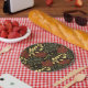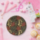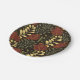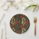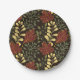 Seamless pattern featuring repeating dark red maple leaves, pale yellow sprigs, and dark green swirling vines on a dark brown background.