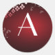 Asiatischer Monogramm-Aufkleber mit dunkelrotem Hintergrund und feinen Blume und Blätter. Wechseln Sie einfach zu Ihrem Monogramm.