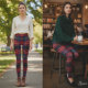 Dark Red Plaid Traditional Square Tartan Leggings