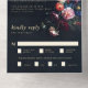 Ein wunderschönes Blumenarrangement umrahmt diese atemberaubende Hochzeitseinladung mit einem dunkelromantischen Thema und einem All-in-One-Format. Ein dunkler mariner Hintergrund mit schwarzen Untertönen ist die Leinwand für klassische Typografie und Touchs von eleganter Kalligrafie in einer goldenen Farbe (digitaler Effekt, nicht echtes Gold). Eine perfekte Wahl für Paare, die die dunkle romanische Hochzeitsvibe und Hochzeitskunst mit einem Gemäldedesign im Stil alter holländischer Meister Liebe haben. Eine dunkle und launische Hochzeitseinladung, die jede Menge Farbe verleiht und eine große Auswahl an Farben bietet, um einem schwarzen Hochzeitskleid oder einer dunkelblauen Hochzeit zu entsprechen. Elegant und romantisch, ist dies eine moderne klassische Hochzeitseinladung. Eine elegante, moderne Einladung für eine märchenhafte Hochzeit, inklusive der Detailkarte und der UAWG. Es hat auch eine Vorlage für ein Foto des Paares. Ideal für Brautpaare, die die Märchenhochzeit mit einem dunklen und launischen Thema, oder gotische Hochzeiten, und die bevorzugen ein Siegel und senden, alles in einem Format für ihre Hochzeitsfeier.