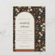 Dark Rust Orange Groovy Retro Arch Floral Wedding Einladung