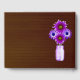 Hübsche, violette Blumen, ein Glaskeramik auf einem dunklen Holzboden schmücken dieses Gästebuch. Die Hochzeitsgärten sind sowohl für das Paar als auch für die Feste ein Vergnügen. Laden Sie die Teilnehmer ein, um Ihnen gute Wünsche an Ihrem Empfang verlassen, und Sie werden sicher sein, auf die nächsten Jahre zurückblicken zu können. Außerdem werden Ihre Gäste auf Ihrer Veranstaltung ihre Marke verlassen, ganz zu schweigen davon, dass sie schreiben können, was sie am großen Tag nicht persönlich zum Ausdruck bringen konnten. Personalisieren Sie das Buch, indem Sie den Text in den angegebenen Feldern ändern. Sie können den Stil, die Größe und die Farbe des Schriftartes ändern.