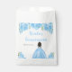 This Quinceanera favor bag features faux glitter bright blue floral flowers and a beautiful princess with dark skin and an elegant dress. This is perfect for a Quinceanera birthday party.