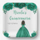 Dark Skin Princess Green Floral Quinceanera Pappteller