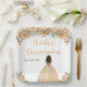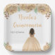 This Quinceanera plate features faux glitter champagne peach cream floral flowers and a beautiful princess with dark skin and an elegant dress. This is perfect for a Quinceanera birthday party.