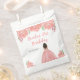 This birthday party favor bag features faux glitter pink floral flowers and a beautiful princess with dark skin hair and an elegant dress. This is perfect for a birthday party.