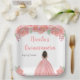 This Quinceanera plate features faux glitter pink floral flowers and a beautiful princess with dark skin and an elegant dress. This is perfect for a Quinceanera birthday party.