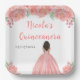 Dark Skin Princess Pink Floral Quinceanera Pappteller