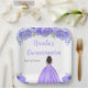 This Quinceanera plate features faux glitter purple floral flowers and a beautiful princess with dark skin and an elegant dress. This is perfect for a Quinceanera birthday party.