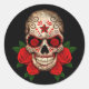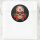 Dark Sugar Skull mit Rote Rosen Runder Aufkleber