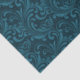 Intricate dark teal floral damask pattern, featuring symmetrical, swirling leaf motifs against a deep background, conveying elegance and sophistication.