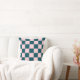 A dark teal and light pink checkerboard pillow with a bold geometric style. Perfect for modern decor.