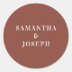 Einfache dunkle Terrakotta und weiße minimalistische Typografie für Ihre Hochzeitsreise Umschlag Aufkleber. Es ist eine matte Finish Option verfügbar. Passen Sie den soliden Farbhintergrund an, um Ihren Hochzeitsfarben gerecht zu werden. Die Vintage Retro-Serif-Schrift mit einem modernen dekorativen Schriftart-Stil in allen Kappen kann individuell angepasst werden. Passen Sie den Abstand der Buchstaben an, um Ihren Bedürfnissen gerecht zu werden.