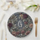 Dunkelgraue, moodisch wirkende Blumenschrift auf dunkelgrauem Hintergrund mit bordeauxroten und blauen Rose.