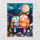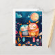 Darstellung der nachts im Wald umarmten Eulen Postkarte