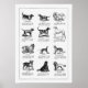 Ein phantastischer Vintager Hund züchtet Plakat, Retrohunde drucken auf schwarz-weißem Hintergrund. Ideal für Hundefreunde, die Vintage Wandkunst Liebe haben.