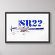 Illustration eines blauen und weißen Cirrus SR22-Leichtflugzeugs mit elegantem Design und moderner Luftfahrttechnik. Ideal für Flieger und Design-Referenz.