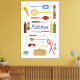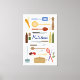 Farbenfrohe Illustrationen und typografisches Design von Küchengeschirr und Lebensmittelzutaten auf cremefarbenem Hintergrund.