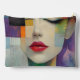 Dieses atemberaubende abstrakte Frauenportrait verbindet Surrealismus mit lebendigen Farbblocktechniken. Ihr ruhiger Ausdruck, geschlossene Augen und fette rote Lippen sind durch eine Mischung geometrischer Formen und malerischer Texturen gerahmt. Ein modernes, avantgardistisches Design, das eine Touch moderner Eleganz ergänzt.
