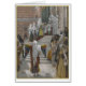 Eigenschaften dieser merkten reizende Grußkarte auf seiner Abdeckung eine Wiedergabe eines Aquarells durch James Tissot (15. Oktober 1836 - 8. August 1902), ein französischer Maler besonders für seine Porträtmalereien. Dieses undurchsichtige Aquarell (getan über Graphit auf Grau spann Papier), zeigt Mary und Joseph, die Jesus den Tempelpriestern darstellen. Die prophetess-Anna-Stände mit ihr zurück zu uns und Armen streckten, während Simeon die rechtschaffenen Stände rechts aus (mit Stock).
