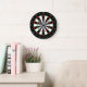 Runde Wanduhr mit authentischer Reglerdartboard-Gestaltung in Schwarz, Rot, Grün und Weiß.