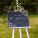 Mit diesem stilvollen Willkommensschild für das Abendessen in der Probe können Sie den Ton für einen eleganten Abend Set. Dieses personalisierte Plakat mit zarten goldenen Blumenakzenten und anmutigen Schriften auf marineblau-blauem Hintergrund eignet sich perfekt für Ihre "Nacht vor"-Feier.