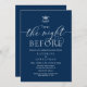 Moderne Romantische Kalligraphie, marineblaue Regelung, Mistletoe mit Hochzeitsglocken, Einladungskarte für das Hochzeitsessen Probe (mit Kartentitel: Vornacht). Es ist ideal für Ihre Hochzeit Probe Dinner feiern Party, bevor Sie Ihren besten Tag. Fügen Sie Ihre Daten in passender schwarzer Schriftart / Schrift hinzu. #TeeshaDerrick