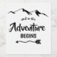 Das Abenteuer beginnt mit dem Trendweinlabel. Unser handgefertigter Berg mit modernen Schriftart und unser handgefertigter Pfeil umgeben das positive Zitat "und so beginnt das Abenteuer".
