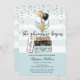 Das Abenteuer beginnt Glitzer Confetti Balloons Koffer Wasserfarben Streifen Boy Babydusche Einladung