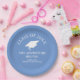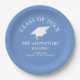 Die Ausrüstung der Graduationspartei. Klasse der 2023 grad Party Geschirr. Lass das Abenteuer beginnen! Blau und Weiß.