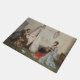 Dieses Design zeigt ein Gemälde des italienischen Künstlers Gerolamo Induno (1825-1890). Es zeigt zwei elegante Frauen, die in einem großen Raum sitzen, der als Kinderzimmer genutzt wird. Ein kleines Baby schläft anmutig in seiner Krippe, die ein aufwändiges Stück goldener Möbel ist. Eine der Frauen näht mit einer Nadel und einem Faden, während die andere neben dem Baby sitzt und sich auf seinem Grill lehnt. Die Frauen sind eindeutig sehr wohlhabend, denn der Raum ist aufwändig und sorgfältig dekoriert. Das Originalwerk wurde 1870 von Gerolamo Induno gemalt.
