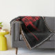 Rote stilisierte Grafik von Batman, der sein Kap mit dem theatralischen Logo von Batman oben hält.